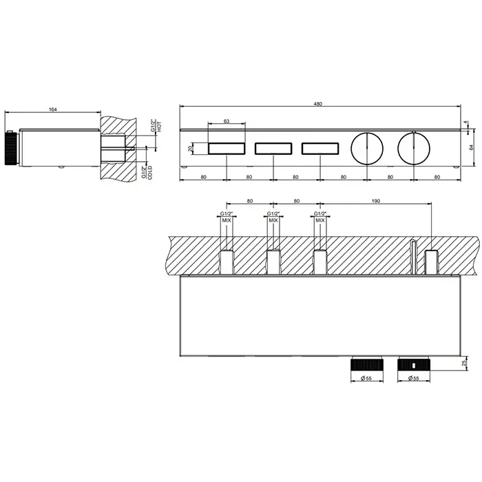 Gessi Hi-Fi Термостат для душа, с вкл. до 2 источников одновременно, с полкой из черного мат. стекла, внешняя часть, цвет: Black Metal PVD