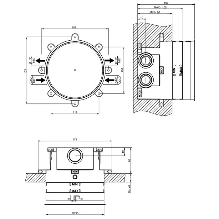 Gessi Hi-Fi Встраиваемая часть для термостатического смесителя на 2 потребителя 38267#031