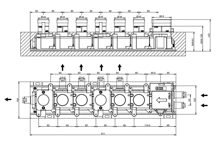 Gessi Hi-Fi Встраиваемая часть для термостатического смесителя на 5 потребителей 63017#031