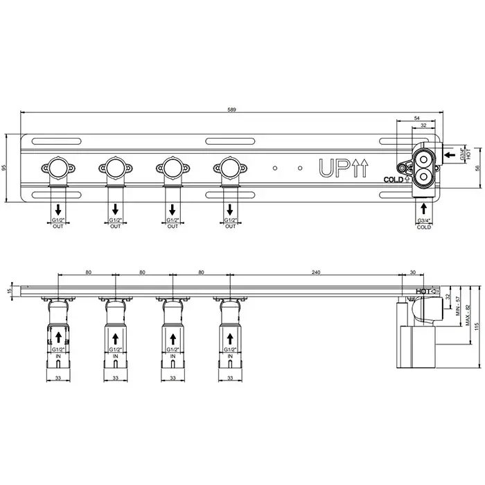 Gessi Hi-Fi Термостат для душа, с вкл. до 5 источников одновременно, с полкой из черного мат. стекла, внешняя часть, цвет: Black Metal PVD