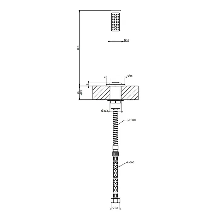 Gessi Inciso+ Смеситель для ванны на 4 отверстия для наполнения через слив-перелив, переключатель, шланг 1,50 м, цвет: black XL
