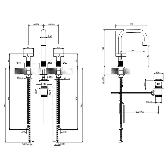 Gessi Inciso+ Смеситель для раковины на 3 отверстия, без донного клапана. цвет: black XL