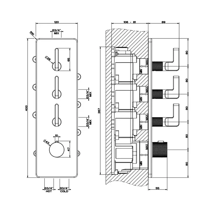 Gessi Inciso Смеситель для душа, встраиваемый, термостатический, резьба 3/4", внешняя часть, цвет: Black XL