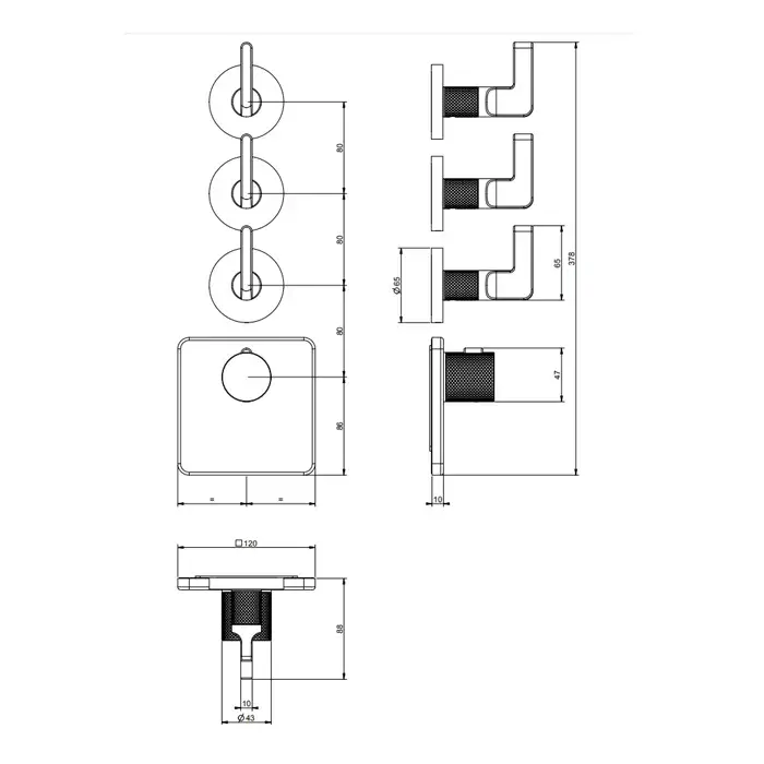 Gessi Inciso Смеситель для душа, встраиваемый, термостатический, резьба 3/4", внешняя часть, цвет: Black XL