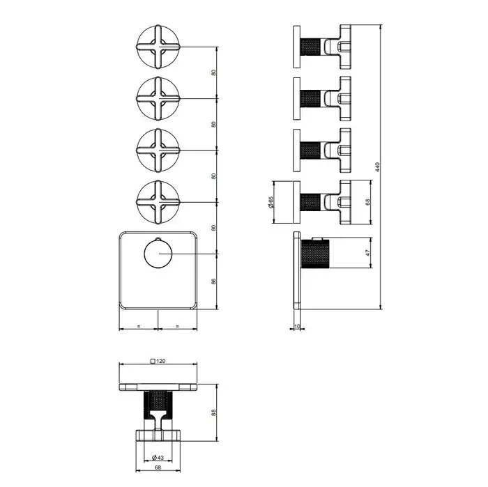 Gessi Inciso Термостат для ванны встраиваемый на 4 потребителя, внешняя часть, цвет: matte black 58348#299