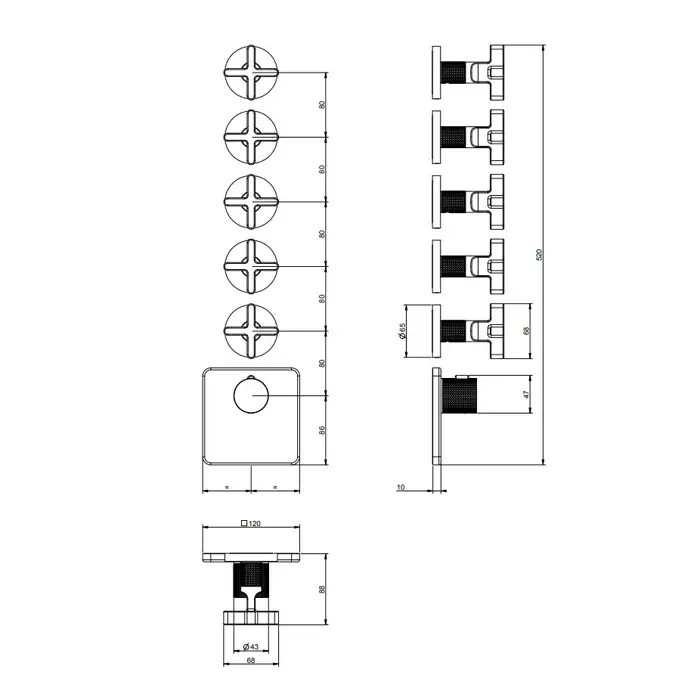 Gessi Inciso Термостат для ванны встраиваемый на 5 потребителей, внешняя часть, цвет: matte black 58350#299