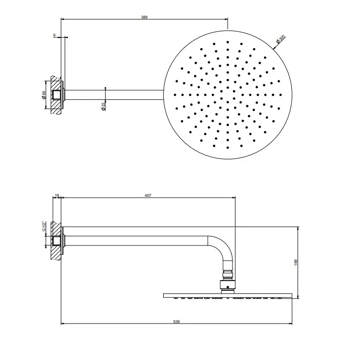 Gessi Inciso Верхний душ 30 см 1 вид струи, кронштейн настенный 38,9 см, цвет: chrome 58248#031