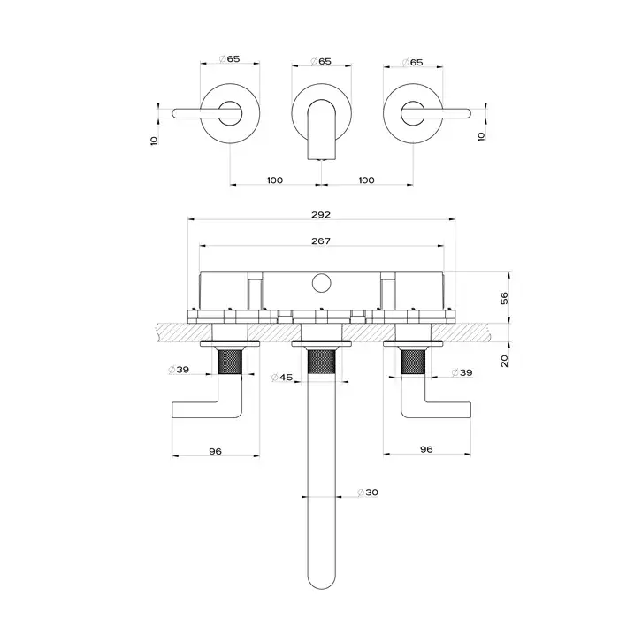 Gessi Inciso+ Встраиваемый смеситель для раковины на 3 отверстия с изливом, без донного клапана. внешняя часть, цвет: black XL