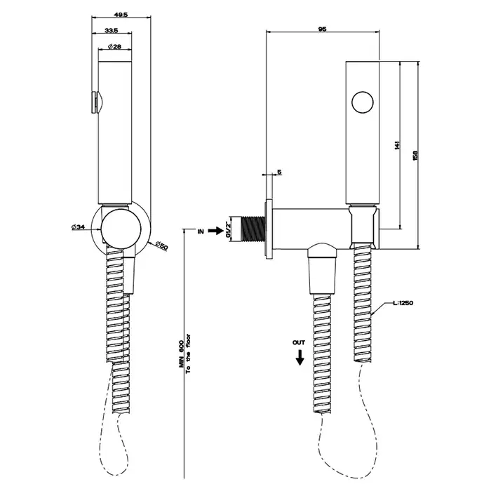 Gessi Ingranaggio Штанга в комплекте с душевой лейкой, шланг 1,50 м и вывод воды, цвет: хром
