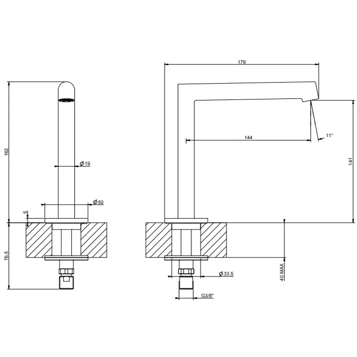 Gessi Ingranaggio Смеситель для раковины, встраиваемый, однорычажный, излив: 18.5-20.5см., внешняя часть, цвет: Black Metal Brushed PVD