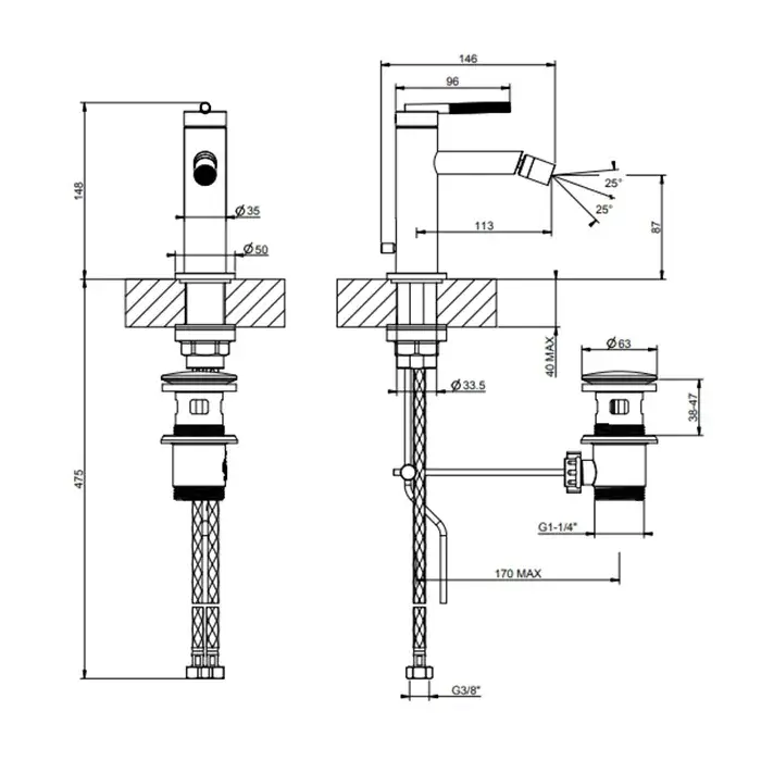Gessi Ingranaggio Смеситель для биде, на 1 отв., однорычажный , цвет: Black Metal Brushed PVD