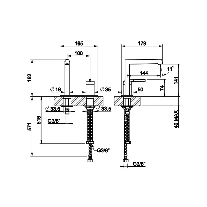 Gessi Ingranaggio Смеситель для раковины, встраиваемый, однорычажный, излив: 18.5-20.5см., внешняя часть, цвет: Black Metal Brushed PVD