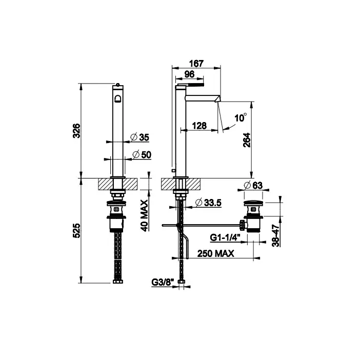 Gessi Ingranaggio Смеситель для раковины, встраиваемый, однорычажный, излив: 18.5-20.5см., внешняя часть, цвет: Black Metal Brushed PVD