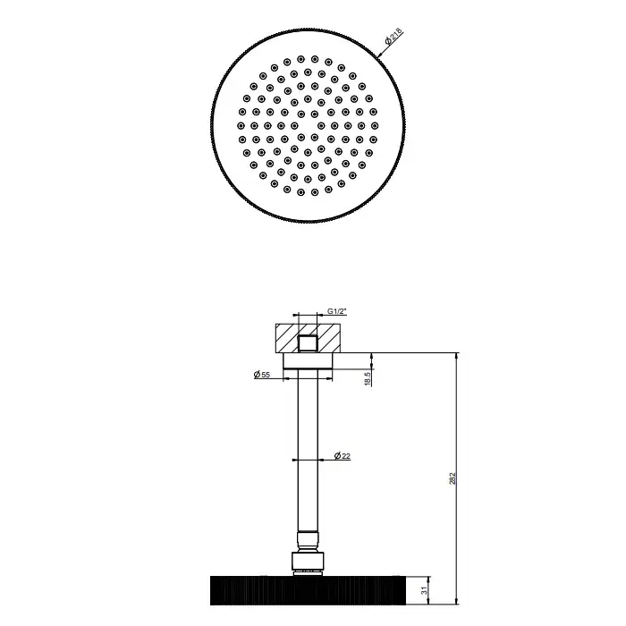 Gessi Ingranaggio Верхний душ 21,8 см 1 вид струи, кронштейн потолочный 28,2 см, цвет: chrome 63552#031