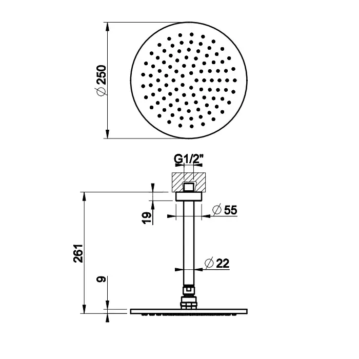 Gessi Ingranaggio Верхний душ 25 см 1 вид струи, кронштейн потолочный 26,1 см, цвет: chrome 63352#031