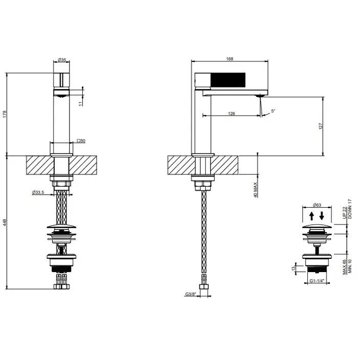 Высота излива, см
