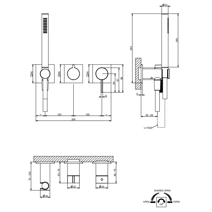 Gessi Inverso Rigato Смеситель для душа встраиваемый, с ручным душем, цвет: warm bronze brushed PVD 73536#726
