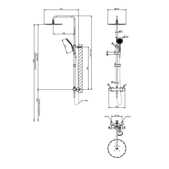 Gessi Minimalistic Shower Душевая стойка: термостат, верхний душ, лейка, шланг 150 см, цвет: chrome 35177#031