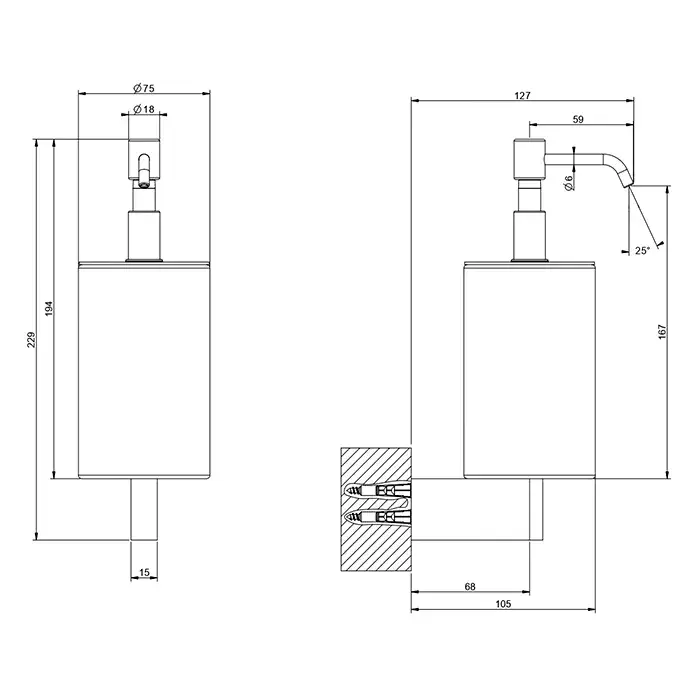 Gessi Origini Дозатор для жидкого мыла, подвесной, с черной колбой, цвет: black metal brushed PVD 66414#707