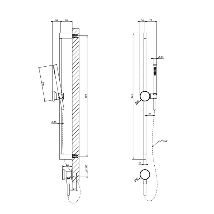 Gessi Origini Душевой гарнитур: ручной душ, штанга 84 см,шланг 150 см, цвет: black metal brushed PVD 66142#707