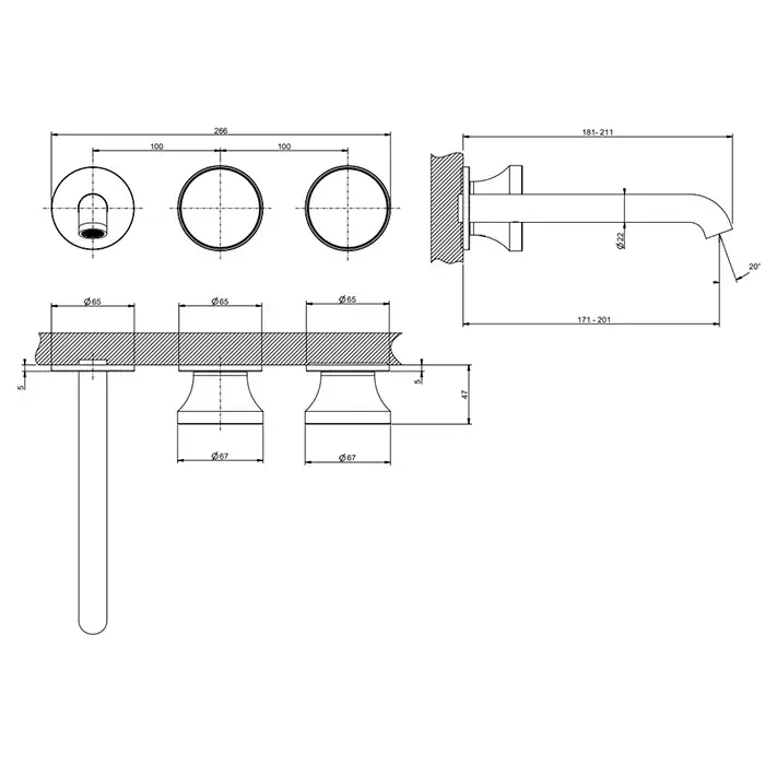 Gessi Origini Смеситель для раковины встр., без вн. части, излив 20,1 см, цвет: brushed brass PVD 66090#727