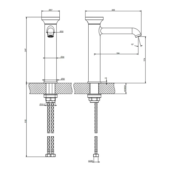 Высота излива, см