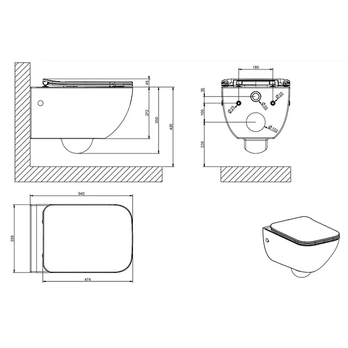 Gessi Origini Унитаз подвесной 54x35 см, крышка микролифт, встроенный сифон, цвет: white ceramic 39118#518