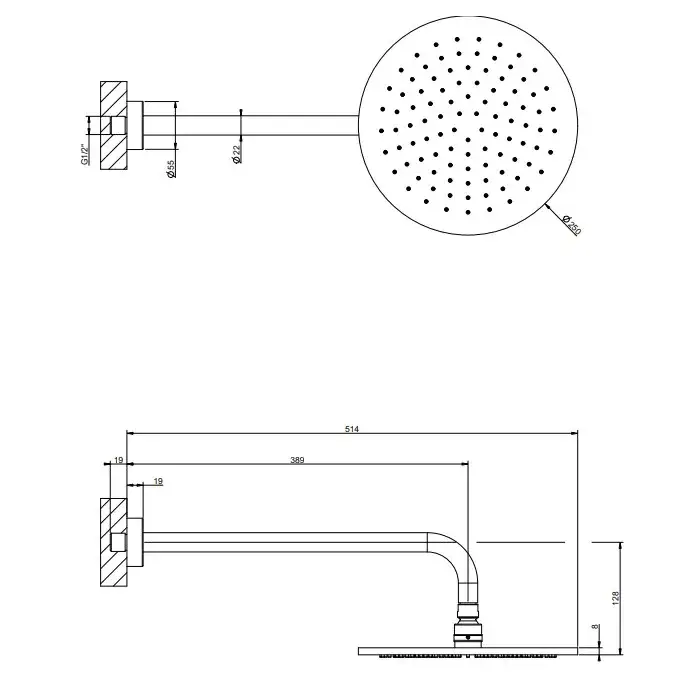 Размер верхнего душа, см