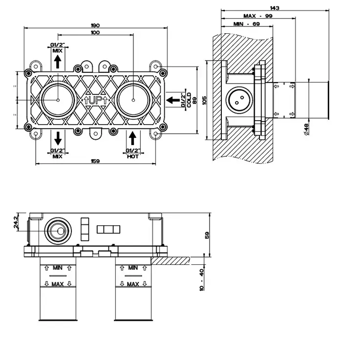 GESSI Parti Incasso Встраиваемая часть для смесителя на 2 выхода