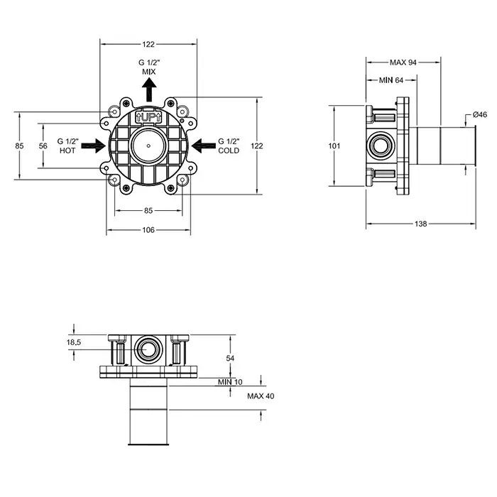 Gessi PARTI INCASSO Встраиваемая часть для смесителя однорычажного, цвет: steel brushed