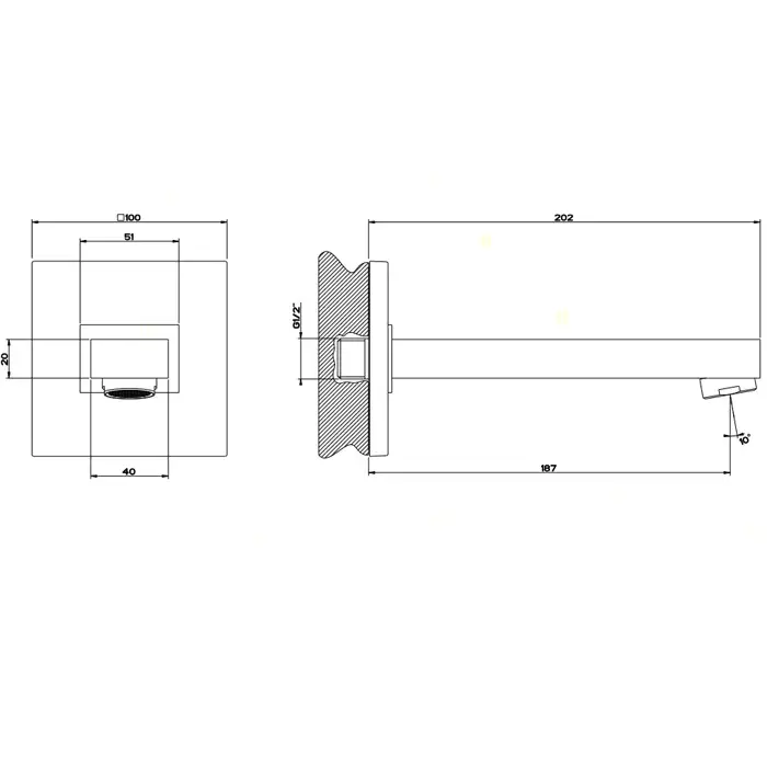 Gessi Rettangolo Излив настенный 18,7 см, цвет: chrome 20120#031