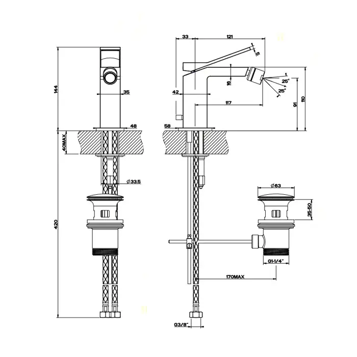 Gessi Rettangolo K Смеситель для раковины, встраиваемый, однорычажный, c подводом воды, держателем лейки и переключателем PULL, внешняя часть, цвет: Black XL