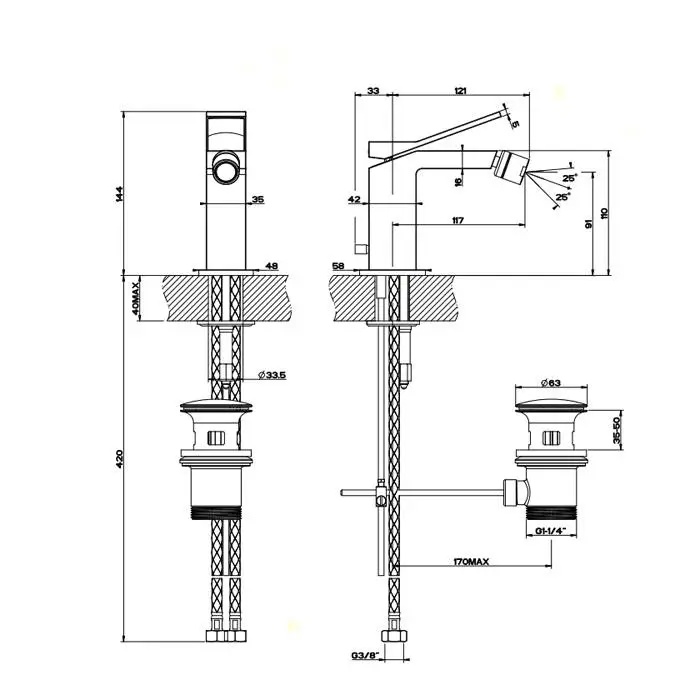 Gessi Rettangolo K Смеситель для биде на 1 отверстие, с донным клапаном, цвет: хром