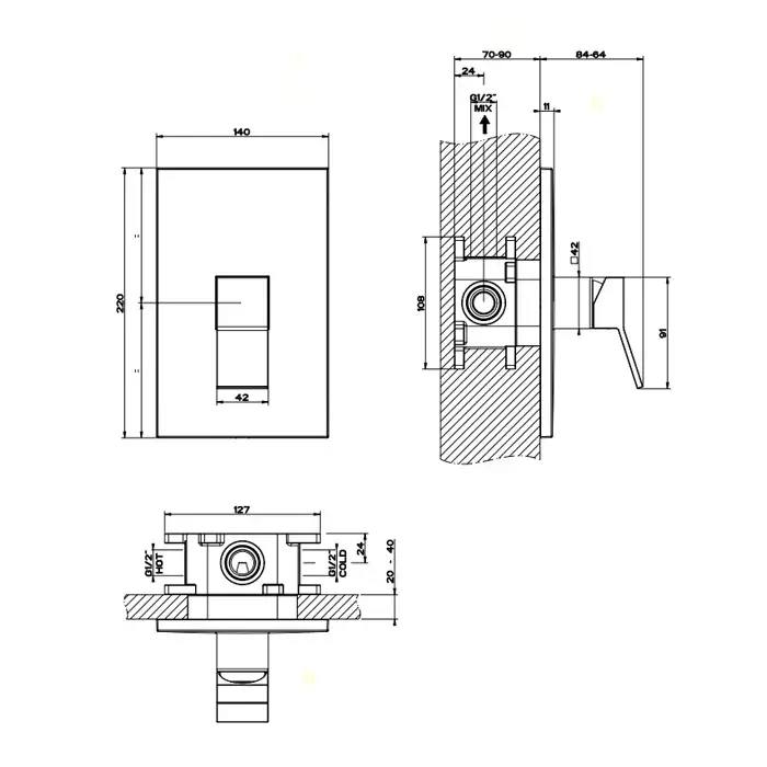 Gessi Rettangolo K Встраиваемый однорычажный смеситель без излива, внешняя часть, цвет: хром