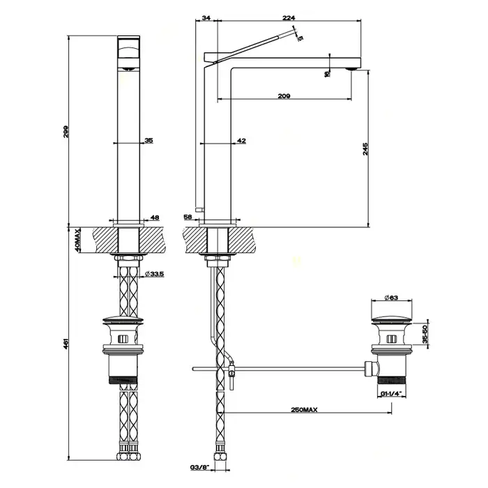 Gessi Rettangolo K Смеситель для раковины, встраиваемый, однорычажный, излив 249мм, внешние части, цвет: Black XL