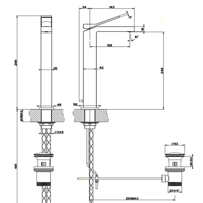 Gessi Rettangolo K Смеситель для раковины, встраиваемый, однорычажный, излив 249мм, внешние части, цвет: Black XL