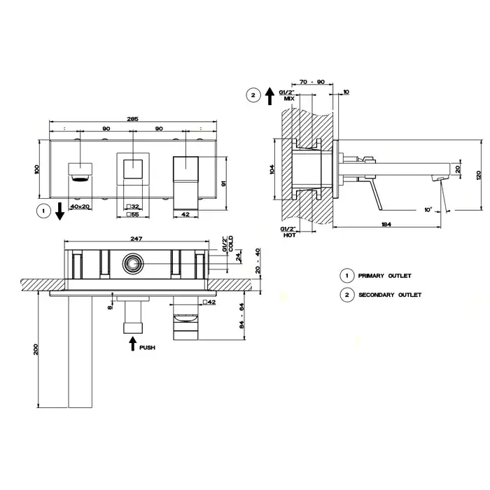 Gessi Rettangolo K Встраиваемый смеситель, с подводом воды, держателем лейки и переключателем PUSH, внешняя часть, цвет: хром
