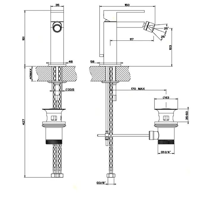 Gessi Rettangolo Смеситель для биде на 1 отверстие, цвет: finox brushed nickel 20007#149