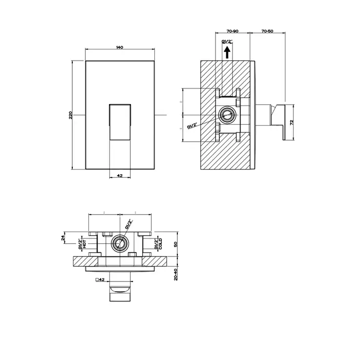 Gessi Rettangolo Вывод воды на 1/2", цвет: Black XL