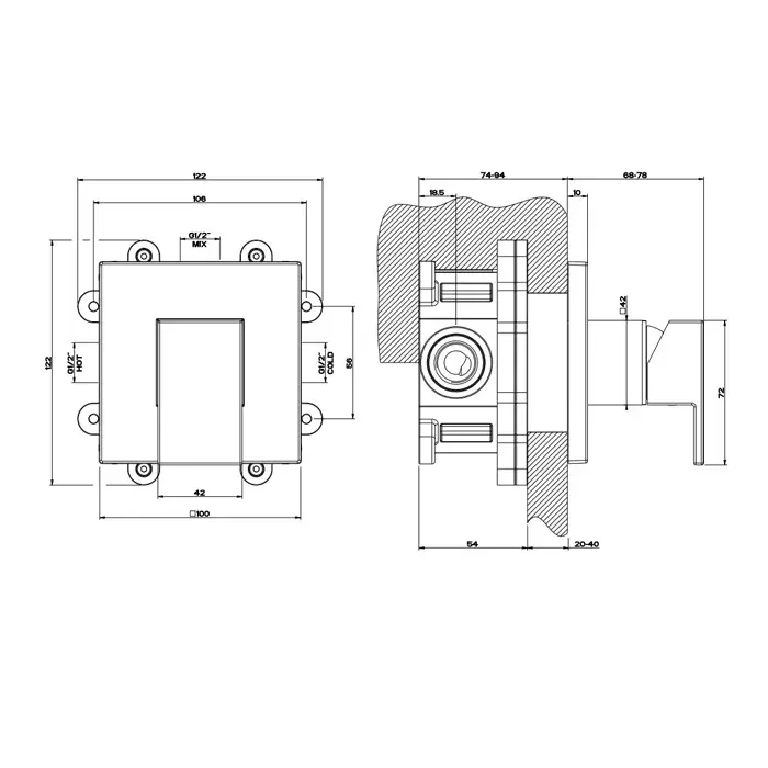 Gessi Rettangolo Смеситель для душа, встраиваемый, термостатический, подключение на 3/4", с 4мя независимыми выходами, внешняя часть, цвет: Black XL