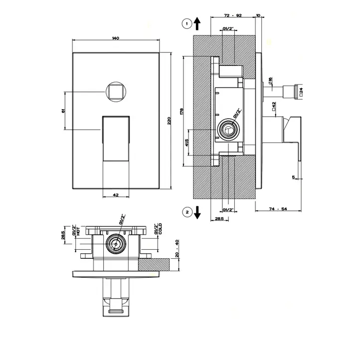 Gessi Rettangolo Вывод воды на 1/2", цвет: Black XL