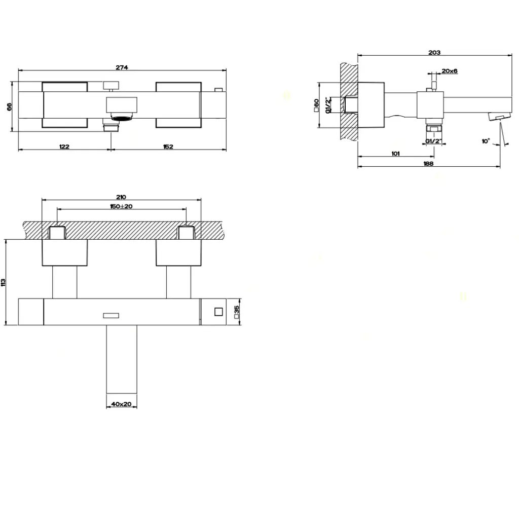 Gessi Rettangolo Термостат для ванны на 2 потребителя, излив 18,8 см, цвет: chrome 20111#031