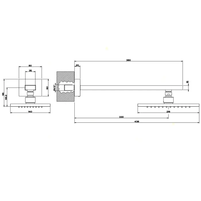 Gessi Rettangolo Верхний душ 14x21,6 см 1 вид струи, кронштейн настенный 38 см, цвет: chrome 20148#031