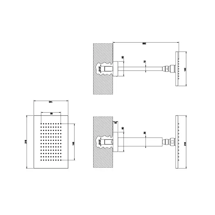 Gessi Rettangolo Верхний душ 14x21,6 см 1 вид струи, кронштейн потолочный 27 см, цвет: matte black 20151#299