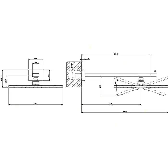 Gessi Rettangolo Верхний душ для настенного крепления 300x300мм, цвет: хром