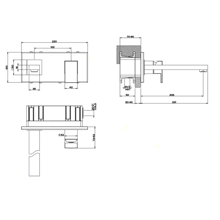 Gessi Rettangolo Смеситель для раковины, встраиваемый, однорычажный, излив 206мм, внешние части, цвет: Black XL