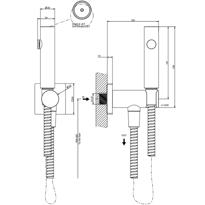 Gessi Rilievo Гигиенический душ одноструйный, шланг 125 см, цвет: matte black 59151#299