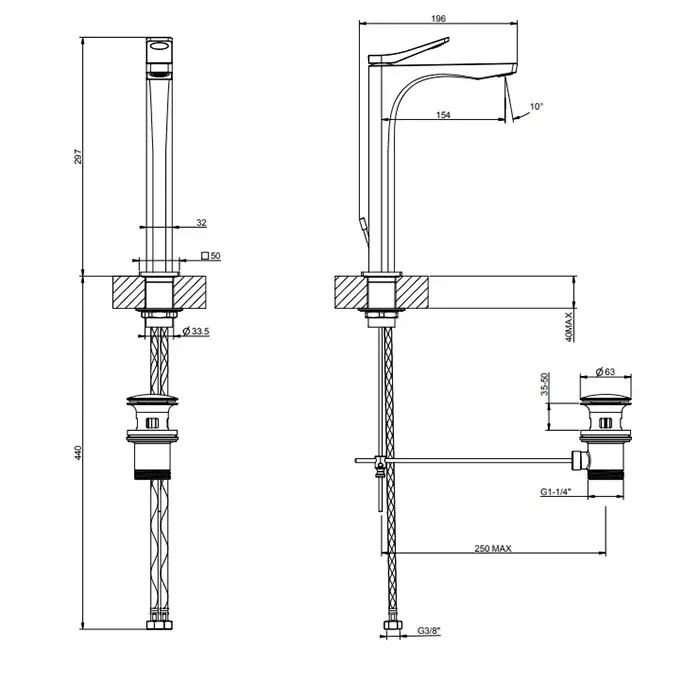 Gessi Rilievo Смеситель для раковины на 1 отв., излив 15,4 cм, цвет nero XL 59003#299