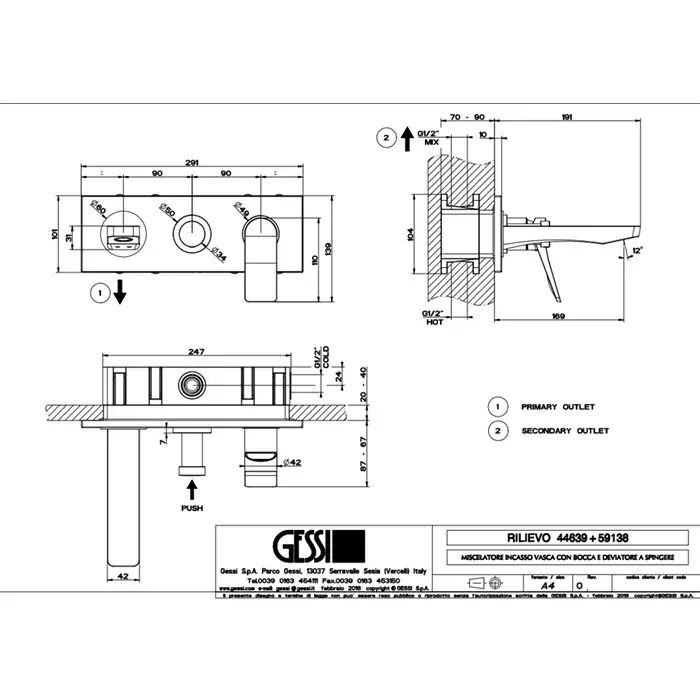 Gessi Rilievo Смеситель для ванны встраиваемый,2 потребителя,излив 17 см,внешняя часть, цвет: chrome 59138#031