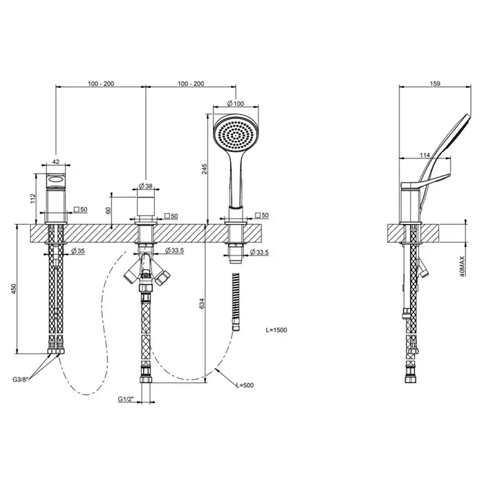 Gessi Rilievo Смеситель на борт ванны на 3 отв, без излива, с ручн. душем, цвет: chrome 59043#031